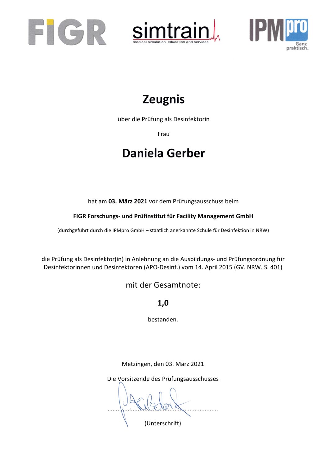- Fachliche Kompetenz im QMMit Daniela Ingelbach, Meisterin im Gebäudereiniger-Handwerk und zertifizierte Desinfektorin, ist höchste Hygienesicherheit in der Unternehmensleitung fest verankert. Sie verantwortet das Qualitätsmanagement und fungiert mit ihrem umfangreichen Fachwissen als idealer Sparringspartner zwischen Kunden und Objektleitung.
